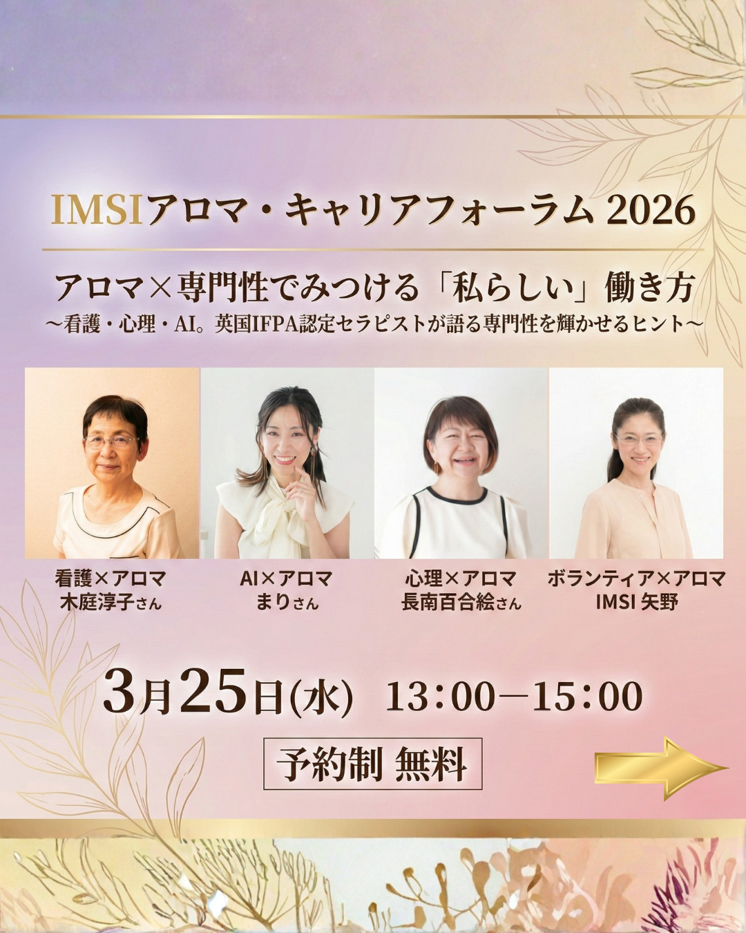 アロマ×専門性でみつける「私らしい」働き方 〜看護・心理・AI。英国IFPA認定セラピストが語る専門性を輝かせるヒント〜